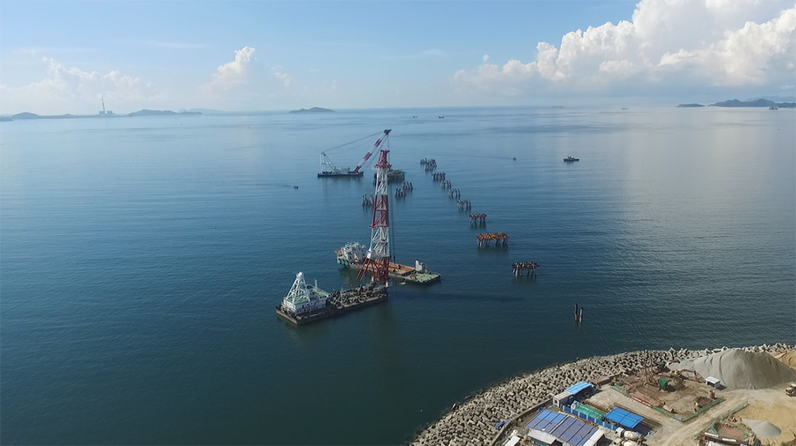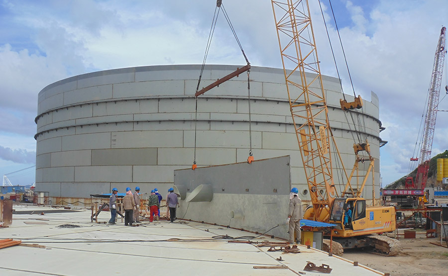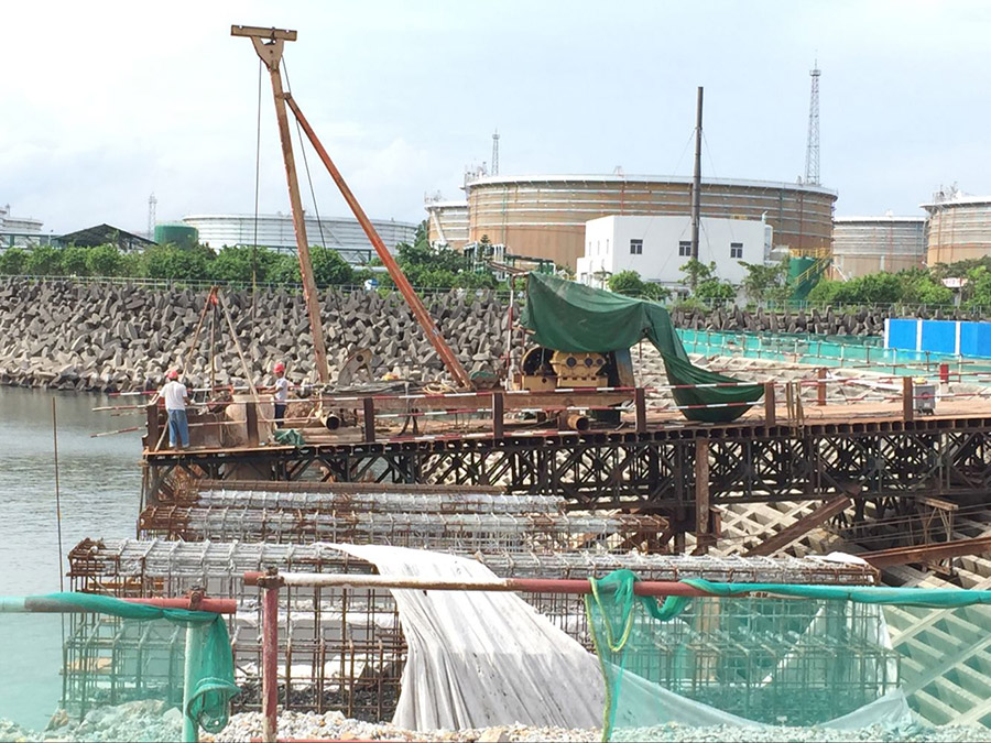 (一)燃料油調和配送中心項目 擬建庫容為115萬立方米罐區。其中: 1.重油罐組60萬立方米:6座10萬立方米(80m×21.8m)儲罐。 2.燃料油罐組(調和罐)40萬立方米:8座5萬立方米(60m×19.3m)儲罐。 3.重柴油罐組15萬立方米:5座3萬立方米(44m×21.78m)儲罐,1座3萬立方米拱頂儲罐。 庫區油品年周轉量為1200萬噸,重油、重柴油、燃料油年周轉次數分別為17次、16次、30次。 (二)配套碼頭工程項目 配套碼頭設計總吞吐能力為2405萬噸/年。建設一個30萬噸級油接卸船碼頭(30萬噸級泊位長度470m),和三個2萬噸級燃料油出運碼頭(三個2萬噸級泊位總長665m,寬20m)以及相應配套設施。 (三)35KV升壓變電站及海底電纜 本項目建設35KV升壓變電站(1×12.5MVA)一座及敷設海底電纜總長約16km(含6km陸域電纜),為燃料油調合配送中心及碼頭生產提供電力。